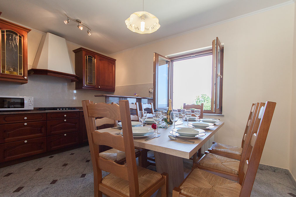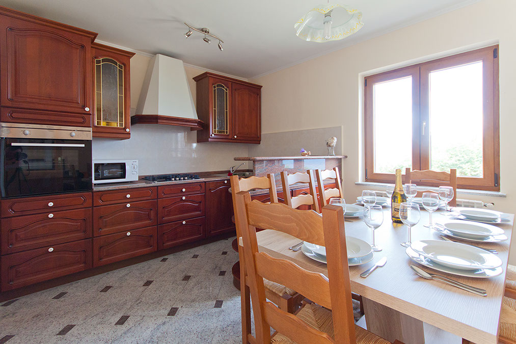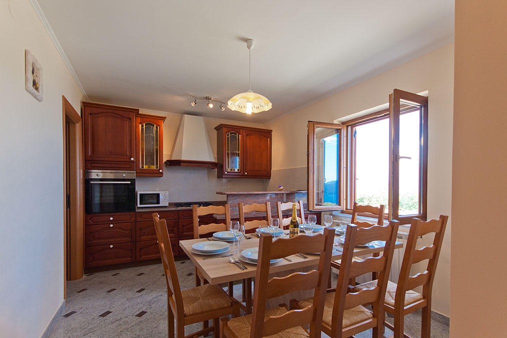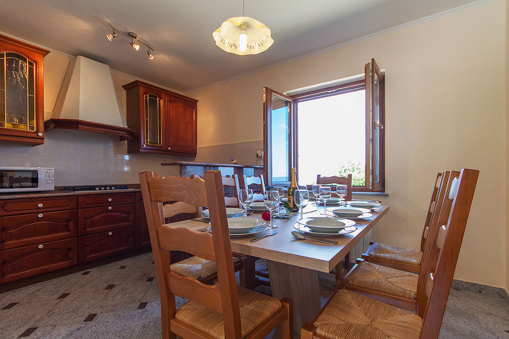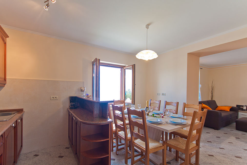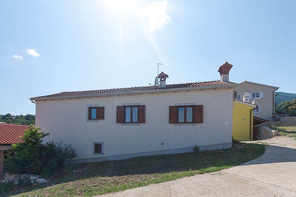 Kuća za odmor sagrađena je 1906 godine te renovirana 2014 godine. Ima 2 etaže koje su povezane vanjskom komunikacijom. U prizemlju nalaze se 2 spavaće sobe i 1 kupaona. Na katu se nalazi kuhinja, dnevni boravak, kupaonica, WC i još jedna spavaća soba.. Ispred kuće je velika terasa natkrivena hladovinom vinove loze. Iza kuće pruža se divan pogled na cijeli Kvarnerski zaljev i otoke: Cres,Krk, Lošinj te grad Rijeku. Od sadržaja za dječiju zabavu tu su tobogan i ljuljačaka.