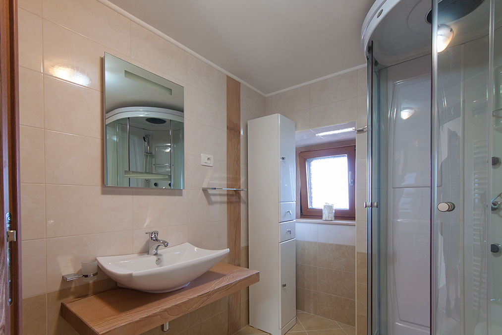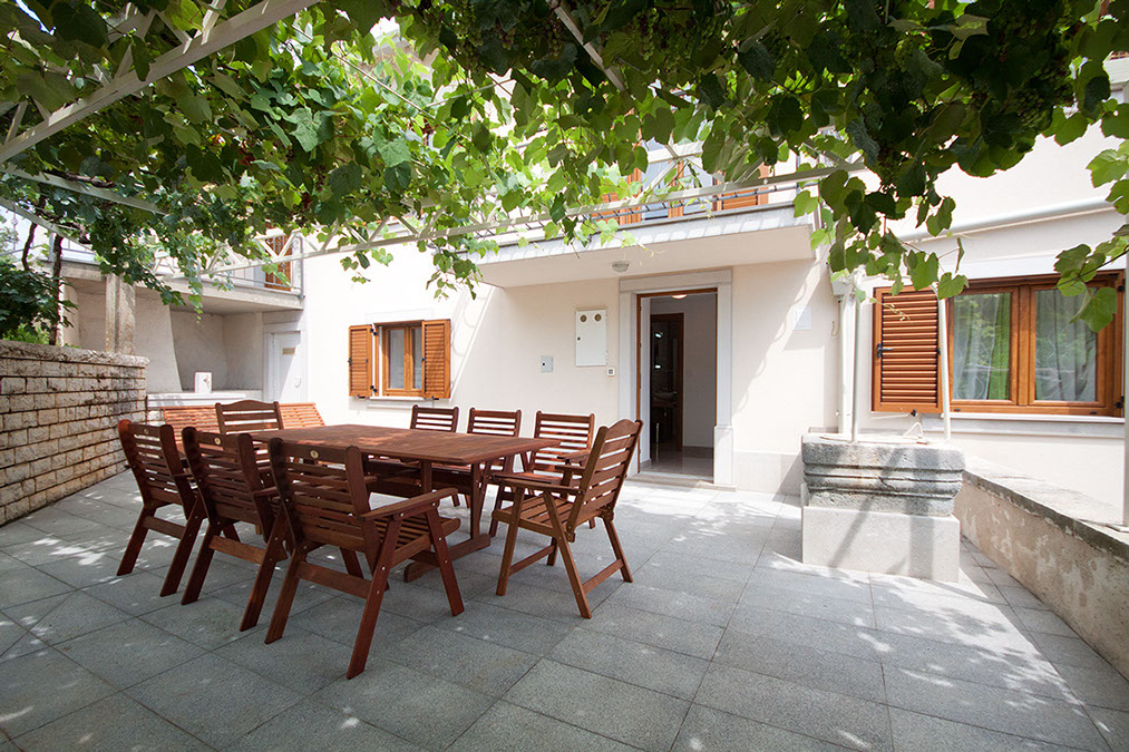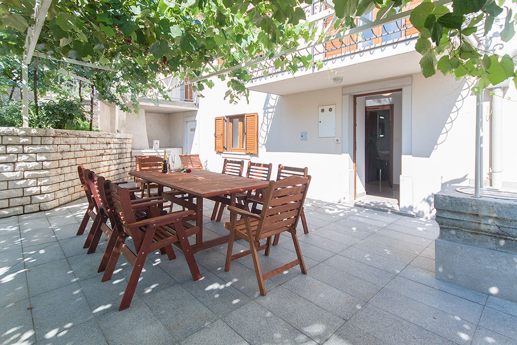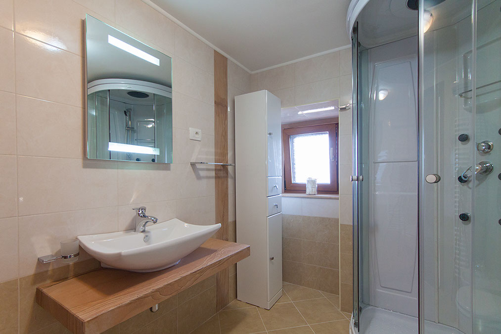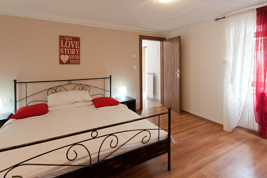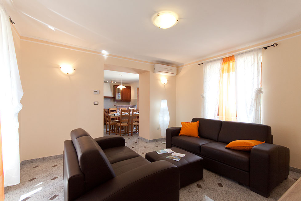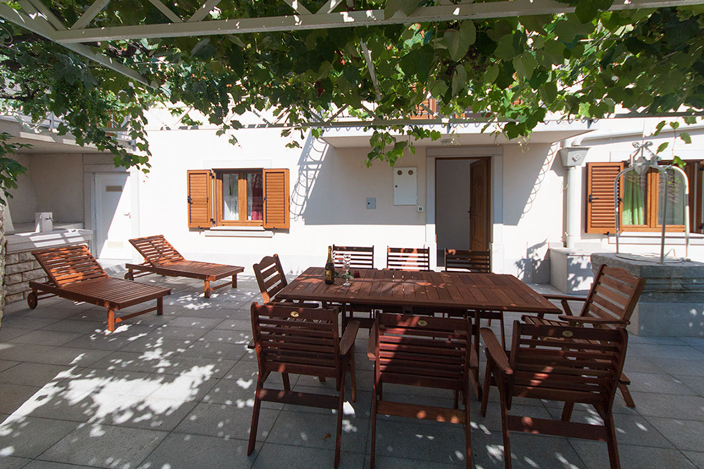 Kuća za odmor sagrađena je 1906 godine te renovirana 2014 godine. Ima 2 etaže koje su povezane vanjskom komunikacijom. U prizemlju nalaze se 2 spavaće sobe i 1 kupaona. Na katu se nalazi kuhinja, dnevni boravak, kupaonica, WC i još jedna spavaća soba.. Ispred kuće je velika terasa natkrivena hladovinom vinove loze. Iza kuće pruža se divan pogled na cijeli Kvarnerski zaljev i otoke: Cres,Krk, Lošinj te grad Rijeku. Od sadržaja za dječiju zabavu tu su tobogan i ljuljačaka.